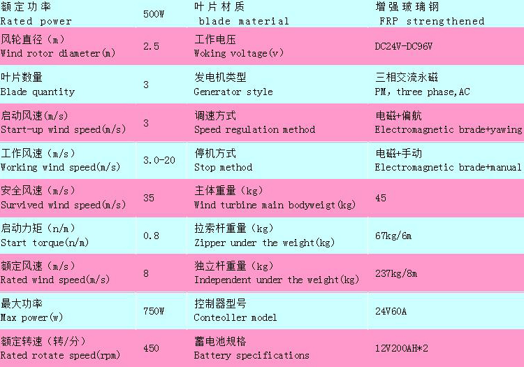 額定功率/最大功率 W | 500/750 | 調速方式 | 偏航+電磁制動 |
