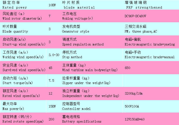 風(fēng)輪直徑 m | 7 | 工作電壓 V | DC96 |